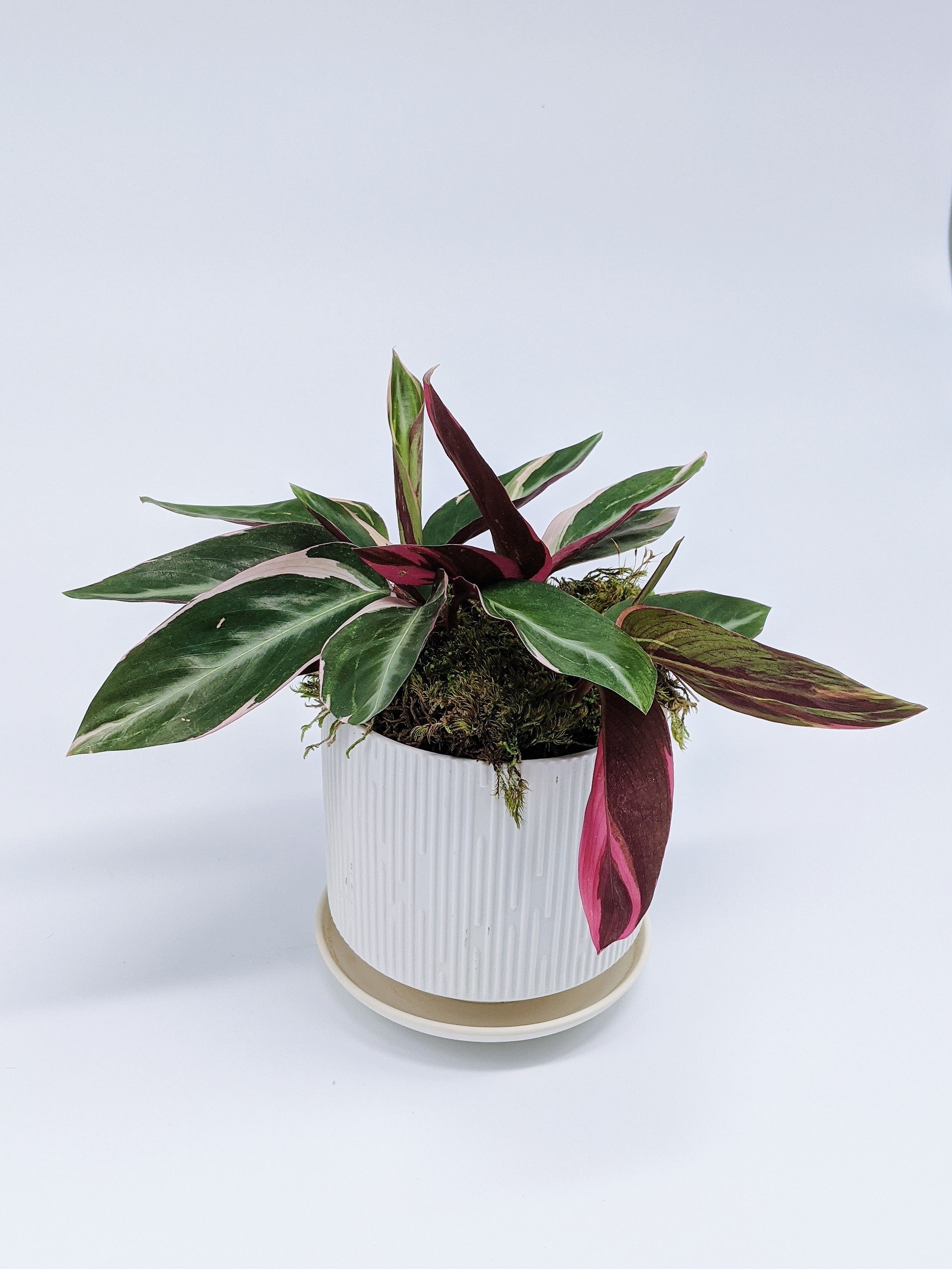 Triostar Stromanthe, also known as Tricolor Stromanthe, is one of the few colorful houseplants, as the name suggests! Its green leaves are streaked with pinks both dark and light, and white. The underside of the leaves are usually a magenta color, which helps the plant to absorb sunlight more efficiently. For that reason, you’ll often notice your leaves turning their undersides to face the sunlight! Fun fact – it will fold its leaves up at night! This member of the Marantaceae family (the “Prayer Plant” family) comes from the Brazilian jungle, and for that reason, it prefers high humidity. Triostar will tell you if it’s not getting enough humidity with brown, crispy leaf tips and edges. A warm, bright, steamy bathroom window is a great place for Triostar, but having a humidifier nearby is another option to keep it from drying out.