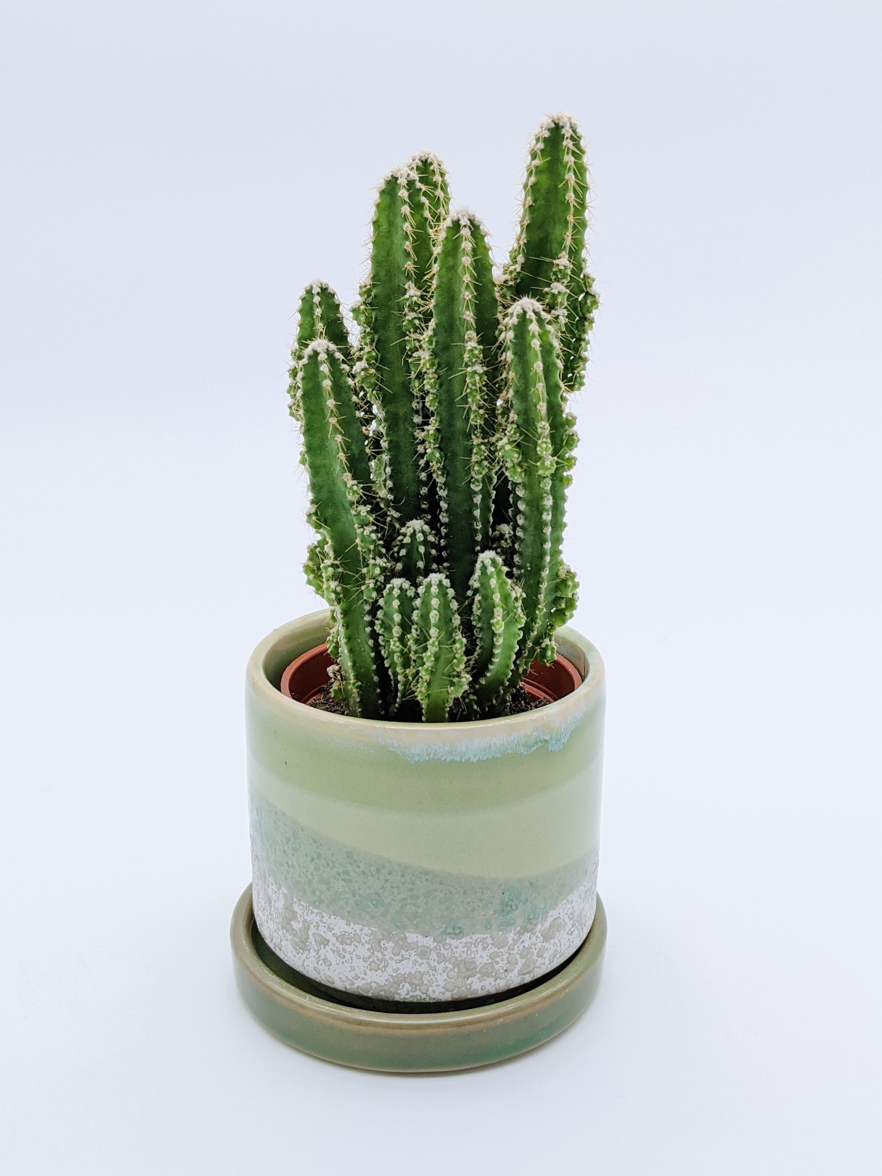 Place Fairy Castle Cactus in a spot that will receive bright indirect sunlight. It likes temperatures between 50 and 80 degrees. It’s not air cleaning, and while it’s not poisonous to pets or children, it is very poky and should be kept away from curious noses and tiny hands. Use a cacti and succulent soil, and plant in a well-draining pot. Water Fairy Castle Cactus when the soil is completely dry. Use the drench and drain method of watering – run water over the soil until it runs through the bottom of your pot, and then let the water finish running completely before placing it back in a tray or saucer. If your pot does not have good drainage, use a moisture meter to check the moisture levels at the bottom of the pot before and during watering. Like other cacti, Fairy Castle is susceptible to root rot, which happens when the bottom of the plant gets too wet and suffocates the roots or causes bacteria to grow.