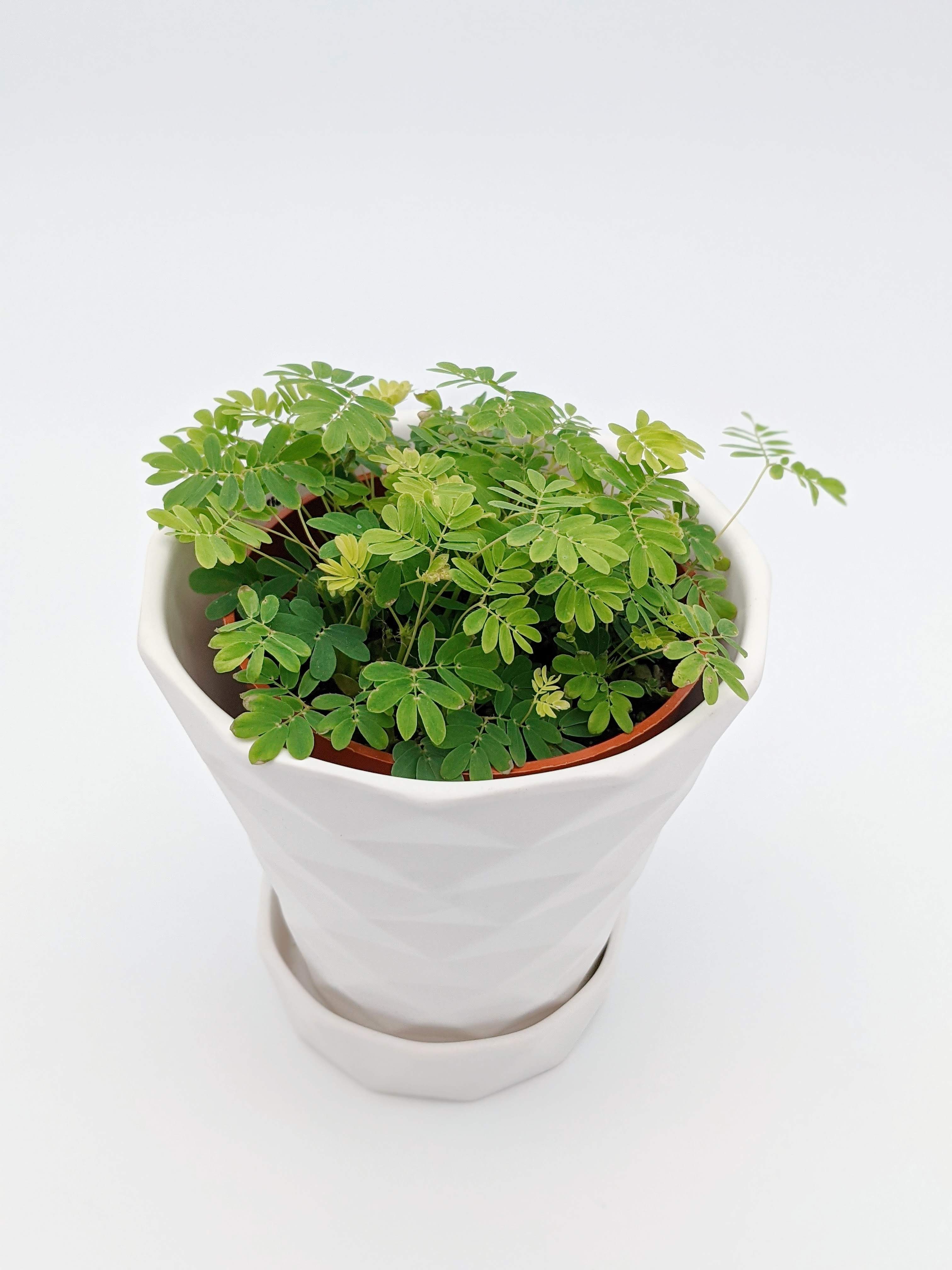 Sensitive Plant needs to be kept moist at all times. It also benefits from humidity. Sensitive Plant needs bright light, and can even handle direct sunlight. If you are short on natural light sources (remember, windows block between 10 and 20 percent of UV rays), Sensitive Plant will do well with artificial lights. Use a soil that is loamy or sandy, and plant Sensitive Plant in a well draining pot. As previously mentioned, keep the soil moist, but don’t let the plant sit in water. Try to wait until the soil is dry one inch from the surface to avoid creating a habitat for gnats.